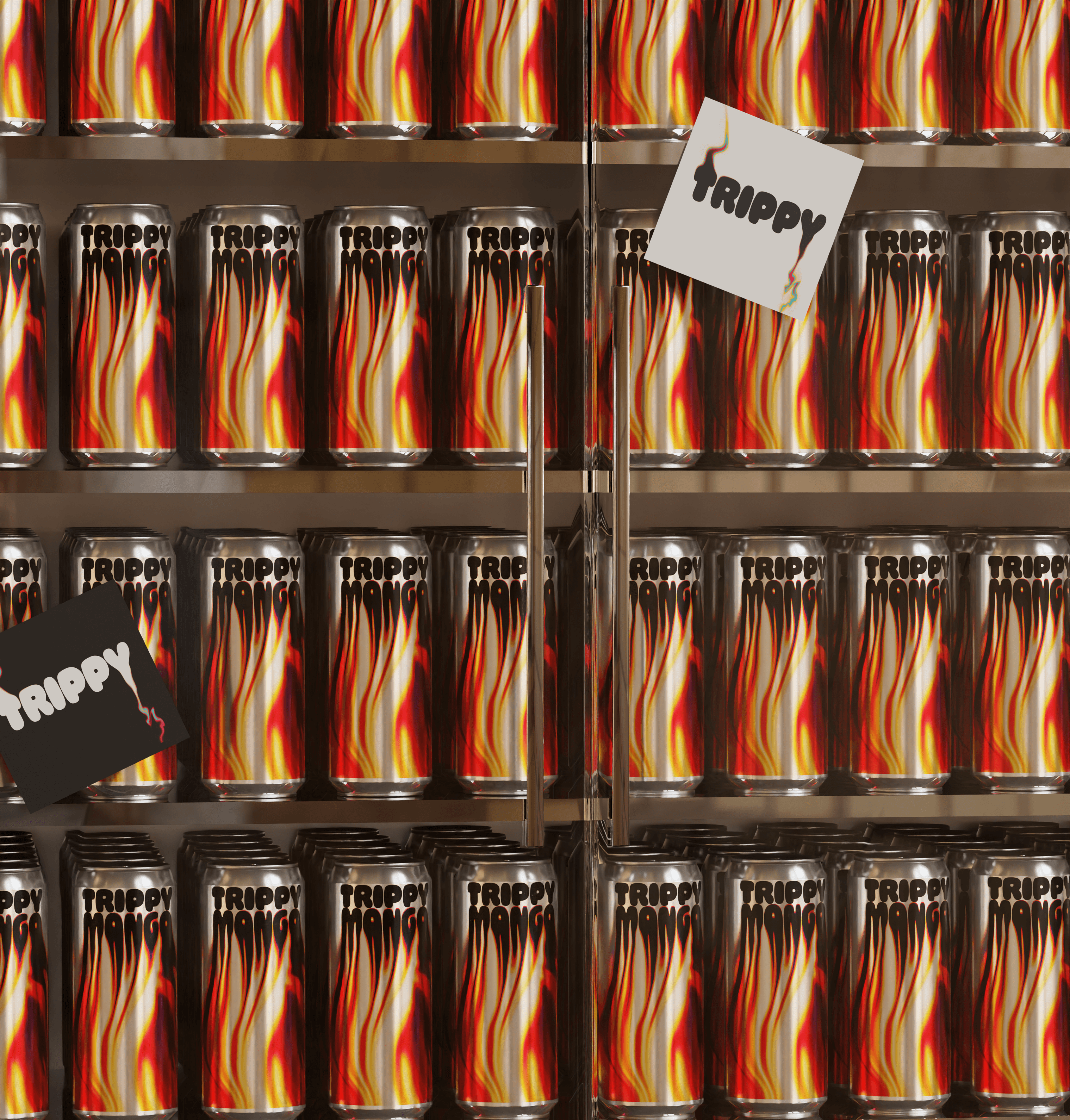 Trippy Soda is a conceptual THC-infused beverage brand designed to disrupt the cannabis wellness market through bold visuals and unapologetic energy. Created as an exploration in psychedelic branding and product design, the project reimagines what a cannabis beverage can look and feel like in a rapidly evolving industry. The brand identity leans into the surreal—vibrant gradients, melting typography, and hypnotic patterns that mirror the altered state the product delivers. Every element, from the can design to the motion graphics, was crafted to blur the line between reality and experience, turning each touchpoint into a visual trip of its own. The project encompasses complete brand development, 3D product visualization, packaging design, and environmental storytelling. From retail fridge mockups to 360° can renders, Trippy Soda demonstrates how to build a cohesive brand universe that feels as immersive as the product itself. This isn't just branding—it's world-building for a product that lives at the intersection of wellness, rebellion, and elevated experience.